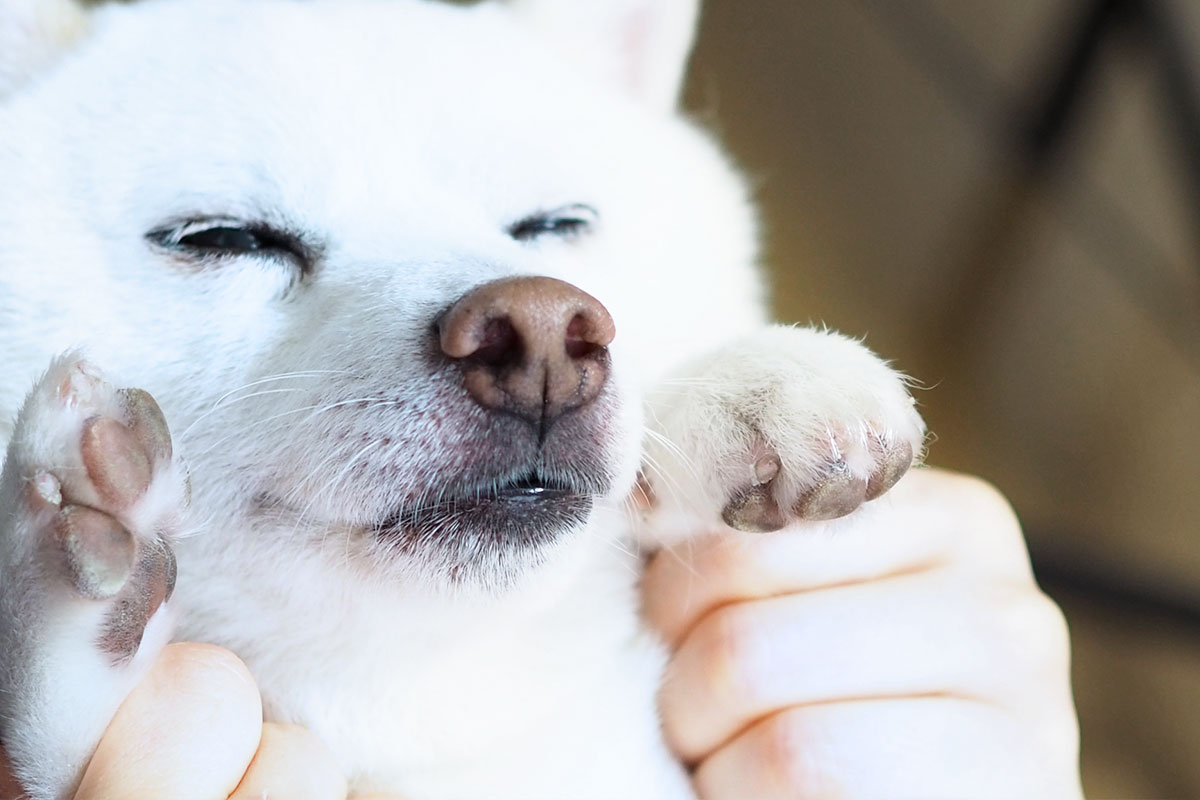 肉球をマッサージしてあげると、血行が良くなって肉球のケアには効果的です。ただし、中には肉球を触られるのを嫌がる犬もいます。無理やり触ると噛まれることがあるので、注意してください。