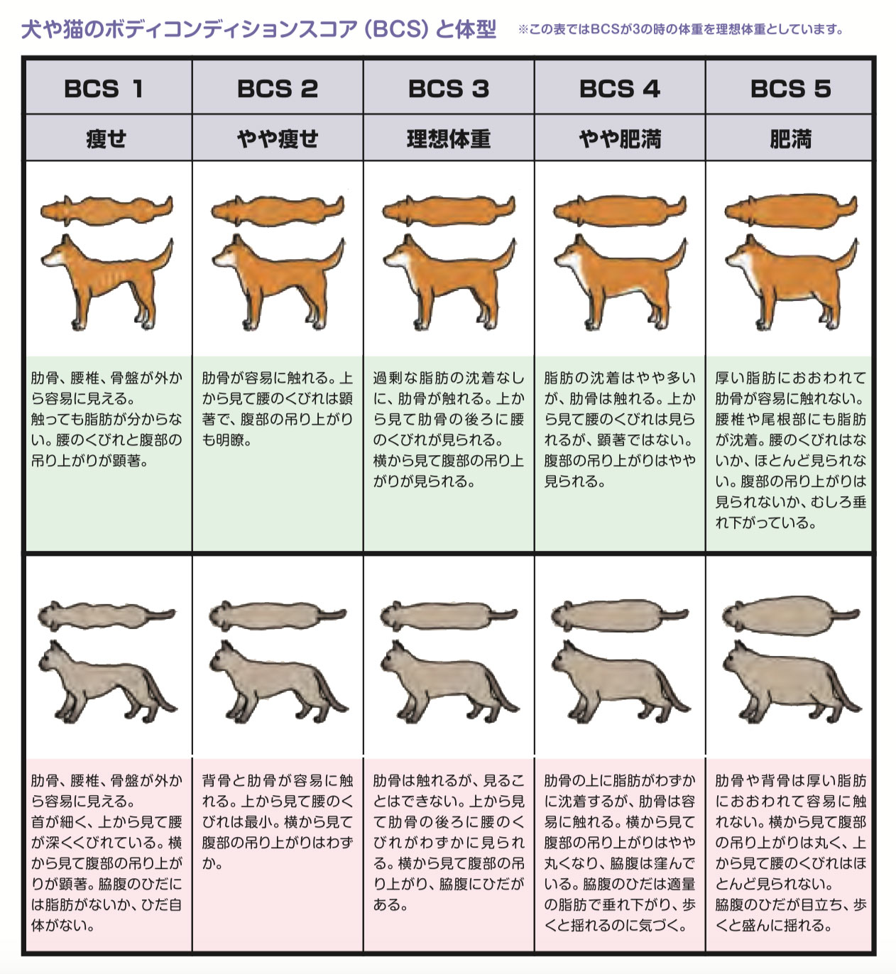 犬が太っているのか、痩せているのかを判断するために、体重以外に「ボディー・コンディション・スコア(BCS)」というものがあります。