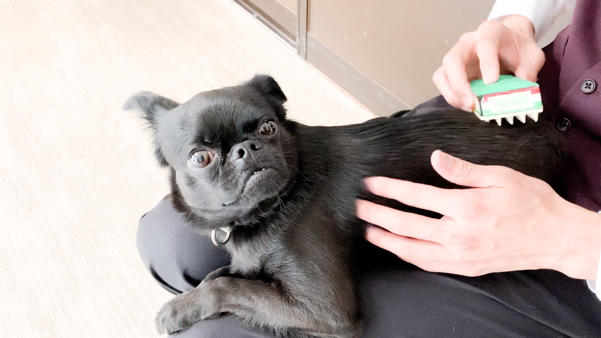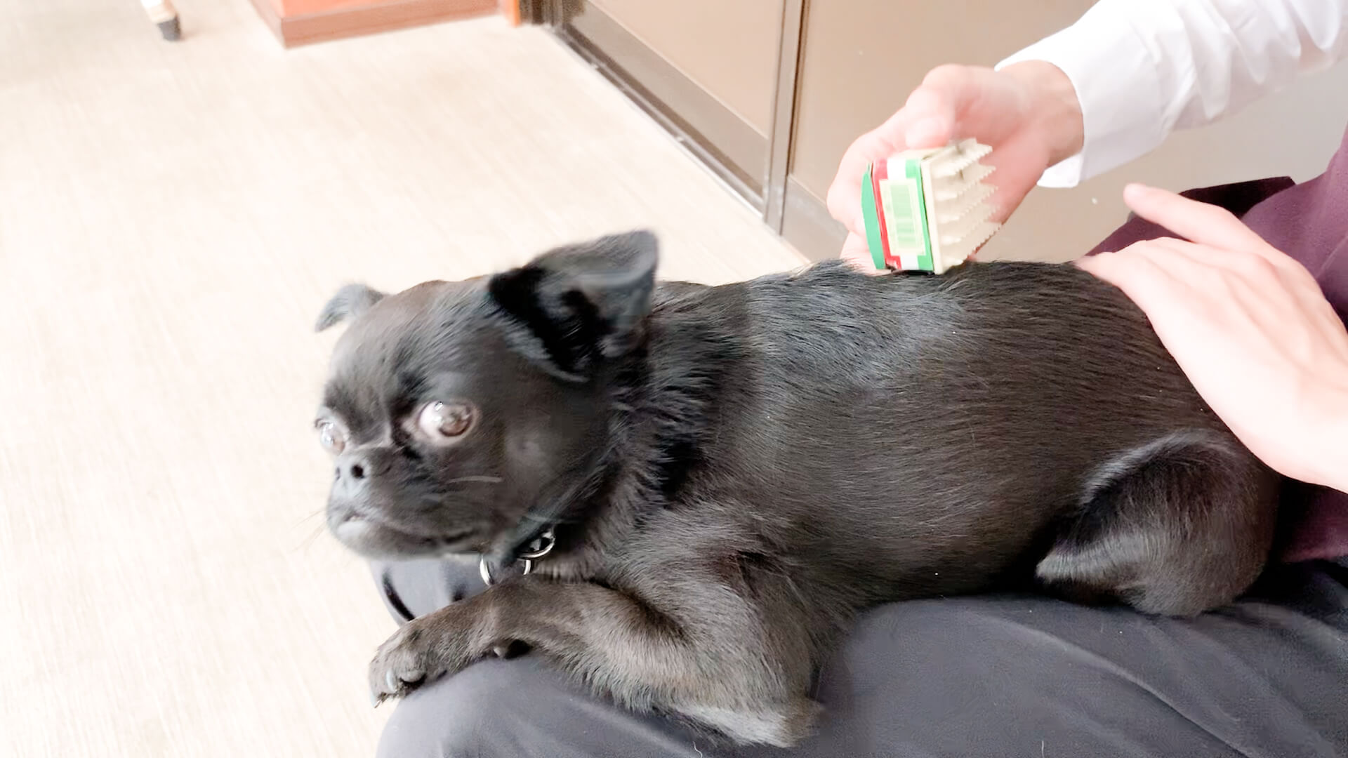 プチブラバンソンのブラッシングは、体全体をラバーブラシ1本で全てブラッシングすることができます。