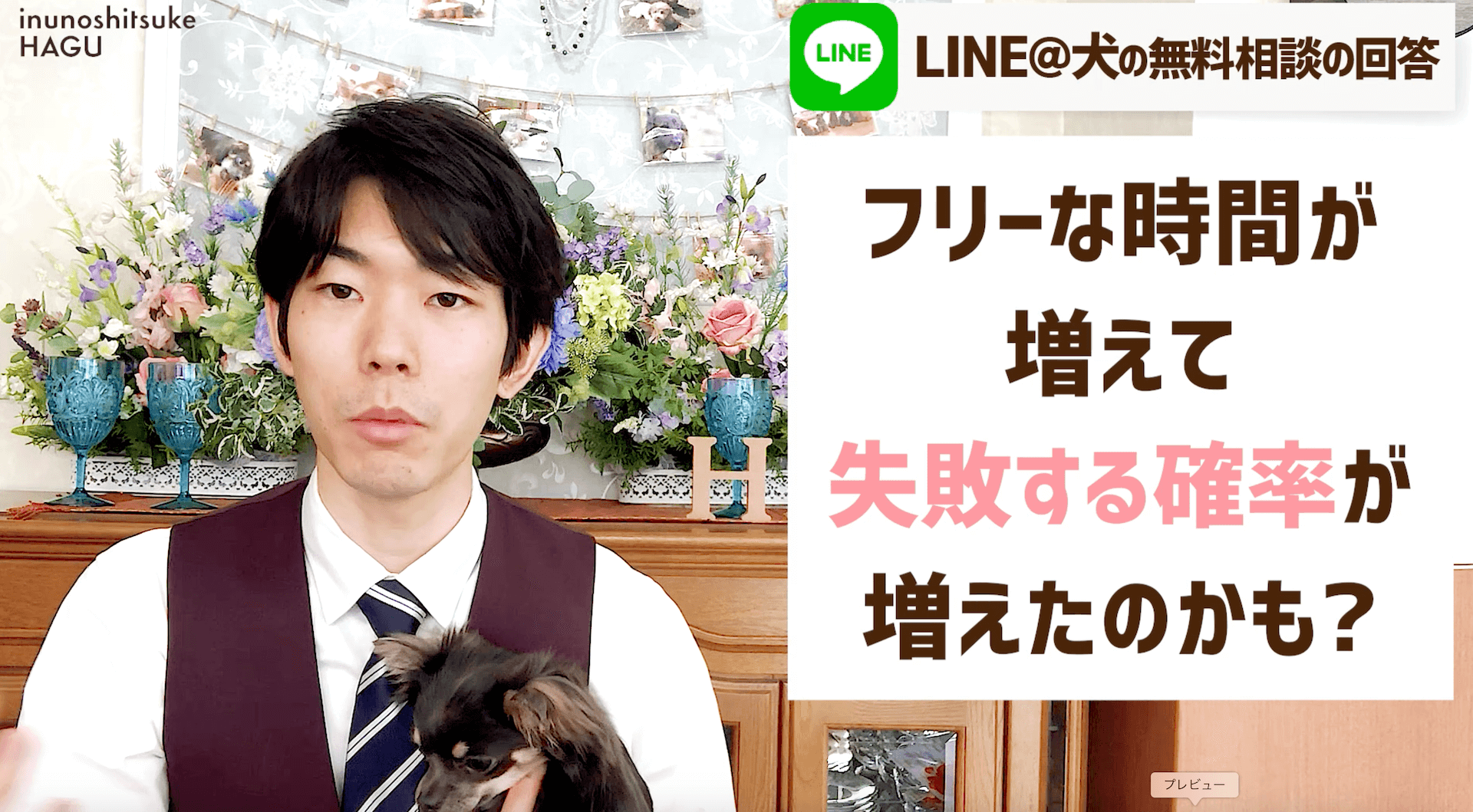 飼い主さんのお家時間が増えて、犬を構える時間が増えても、ケージの中に入っている時間と表で遊ぶ時間の両方を設けて頂いて、今まで通りの生活を維持するようにして下さい。