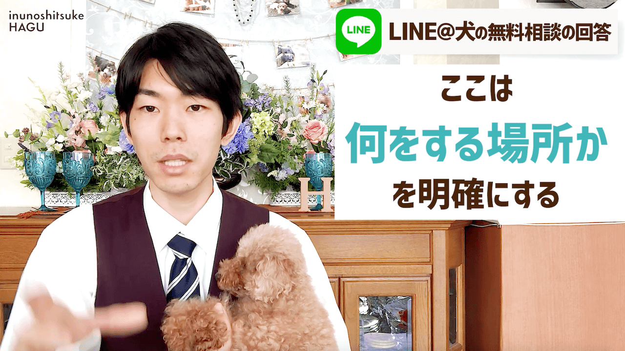 何処で寝るのか、何処で排せつを済ませるのか、何処で遊ぶのか、まずその3つの場所を明確にすると、わかりやすいです。