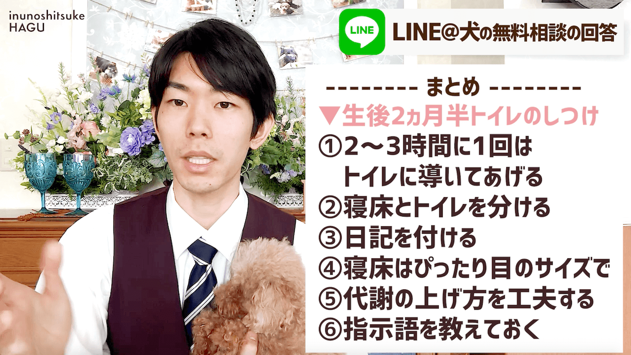 まだ2ヵ月なので、少し手がかかるかもしれませんが、飼い主さんが成功に導いてあげて下さい。