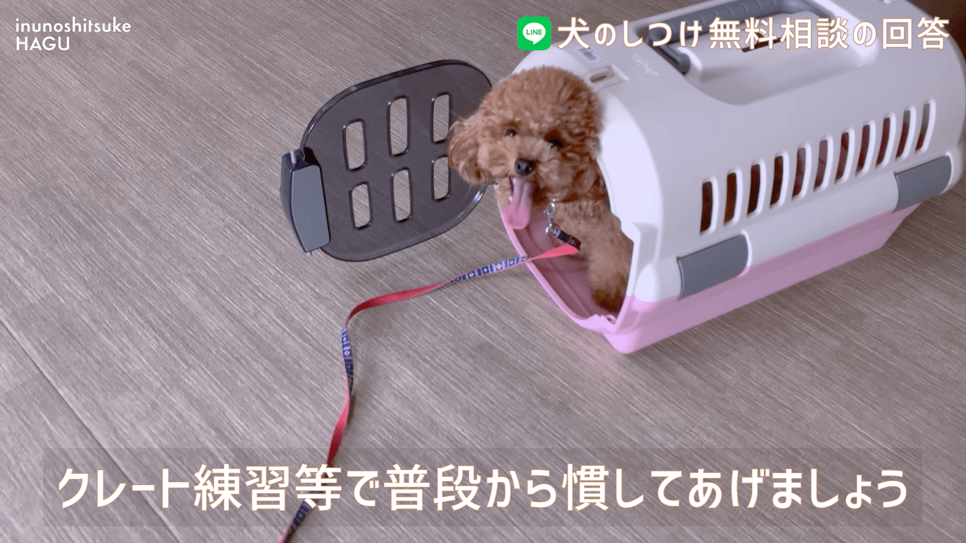 普段から、クレートの中に入れる練習をしていただくとよいでしょう。
