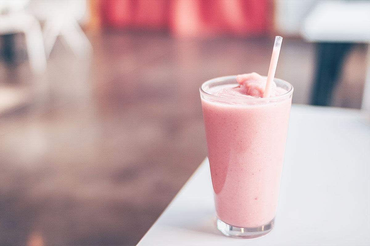 疲労回復に効果のある豆乳と甘くておいしいすいかとももの簡単スムージーです。