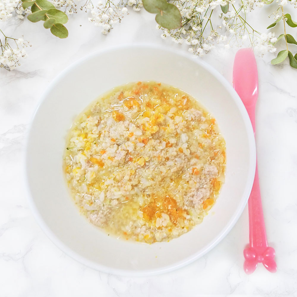 - お肉の油分だけでは少し足りないので、今回はオメガ3が豊富な亜麻仁油を入れましたが、えごま油・ごま油・米油など、その日によって風味を変えて楽しませてあげると良いと思います。